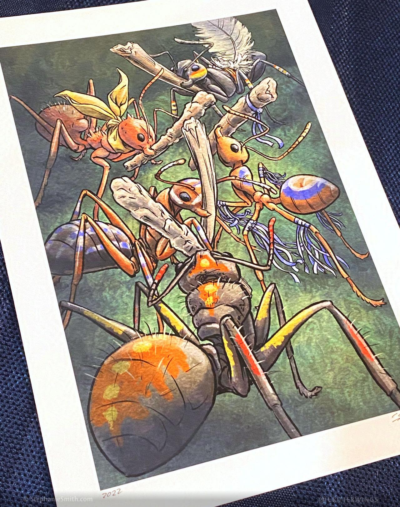 “Dance/Battle (The Five of Wands)” was created for a Limited Edition animal-themed collaborative Tarot deck – the Kickstarter to print this deck funded in 3 days and earned twice the original goal!